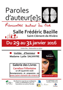 Organisée par la Délégation Culture de la Mairie de Saint Clément de Rivière représentée par Francine BOHE, la Médiathèque C.B.T.P et l’association « Les lectures plurielles », en collaboration avec la Salle Frédéric Bazille de Saint Clément de Rivière.