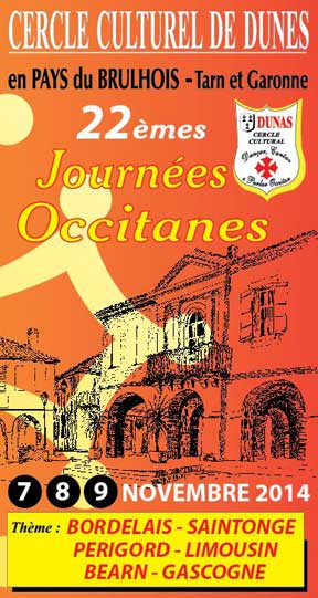 Retenez, dès à présent, cette date sur vos agendas ! Les 22 èmes Journées Occitanes de Dunes auront lieu les 7 , 8 et 9 novembre 2014.