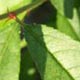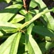 Ses feuilles caduques acuminées sont vert franc et dégagent une légère odeur d'amande. Elles sont longues de 8 à 15 centimètres sur 2 ou 3 centimètres de large avec un court pétiole pourvu de part et d'autre de deux ou trois nectaires à la base du limbe.
