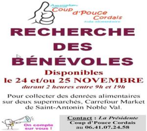 Pour le vendredi 24 et le samedi 25 novembre 2017, pour le « Coup de Pouce Cordais »