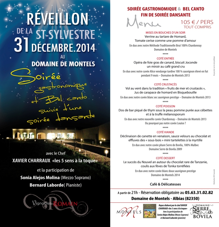 Soirée Gastronomique et Bel Canto suivi d’une soirée dansante le Mercredi 31 Décembre 2014 au Domaine de Montels.