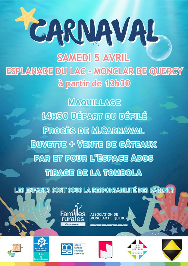Rendez-vous à l’Esplanade du lac de Monclar de Quercy à partir de 13h30 pour un départ de défilé à 14h30