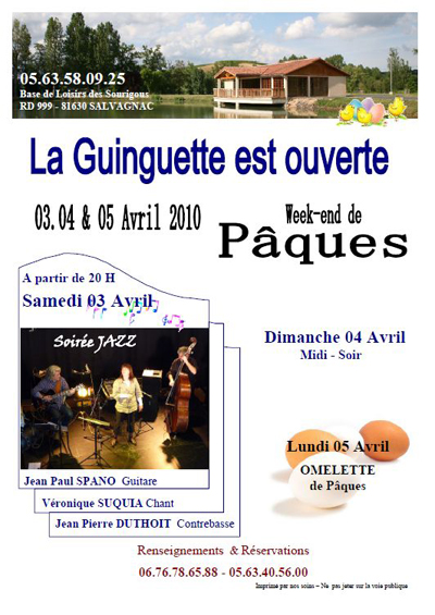 La Guinguette sur la base de loisirs des Sourigous à Salvagnac ré ouvre ses portes dans un premier temps, le week-end de Pâques, avec un soirée Jazz le samedi et ensuite tous les week-ends du mois de mai !
