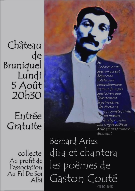Le Château de Bruniquel accueille lundi 5 août 2013, à 20h30, Bernard Aries qui lit et chante le poète anarchiste et internationaliste Gaston Couté (1880-1911)