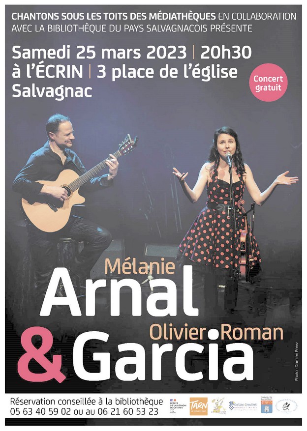 Salvagnac et sa bibliothèque accueille cette année Mélanie ARNAL accompagnée par la guitare d’Olivier-Roman GARCIA.