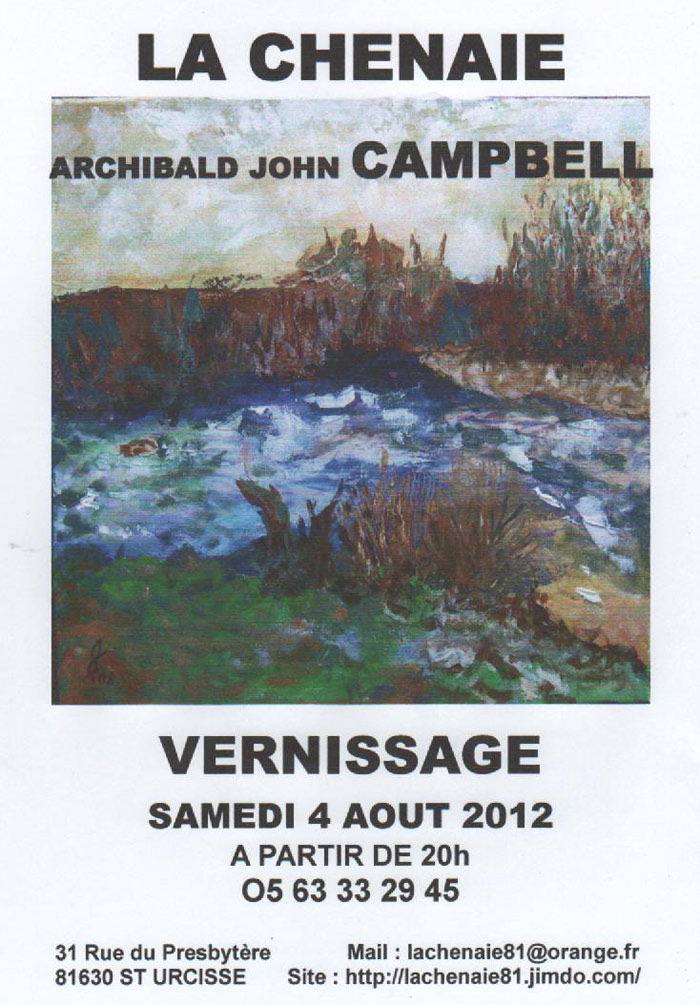 Samedi 4 août 2012 à 20h…….Vernissage gratuit de l’exposition de l’artiste peintre Archibald John Campbell.