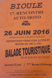 Bourse d’échange : Samedi 25 Juin 2016, Ballade Touristique et exposition le Dimanche 26 Juin 2016 sur la place de l’Église.