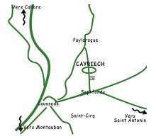 prendre la D9 au nord de Septfonds. A Cayriech, suivre les panneaux » Ferme ouverte bio « .