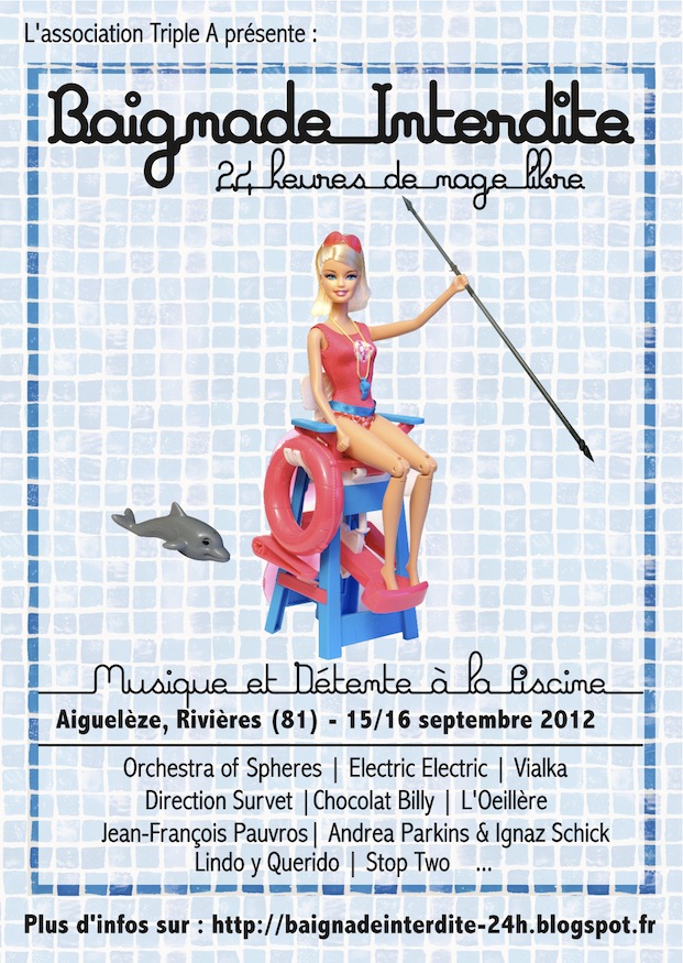 « Baignade Interdite – 24heures de nage libre » prend ses quartiers aquatiques à l’ancienne Piscine de la Base de Loisirs d’Aiguelèze, lieu-dit de la Commune de Rivières (81), au bord du Tarn, entre Albi et Gaillac les 15 et 16 Septembre 2012.