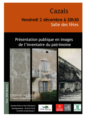 Présentation publique en images de l’inventaire du patrimoine : Conférence illustrée le Vendredi 2 Décembre 2011 à Cazals.