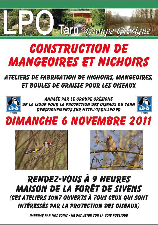 Atelier animé par le groupe Grésigne de la Ligue pour la Protection des Oiseaux du Tarn, le Dimanche 6 Novembre 2011, à 9h à la Maison de la Forêt de Sivens.