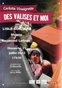 Dans le cadre de son exposition « Le Cirque au temps de Toulouse-Lautrec » et poursuivant son cycle de conférences et d’animations, le musée Raymond LAFAGE accueille le Dimanche 31 Juillet 2016 à partir de 17h30, Carlotta Vinaigrette pour un solo de clown.