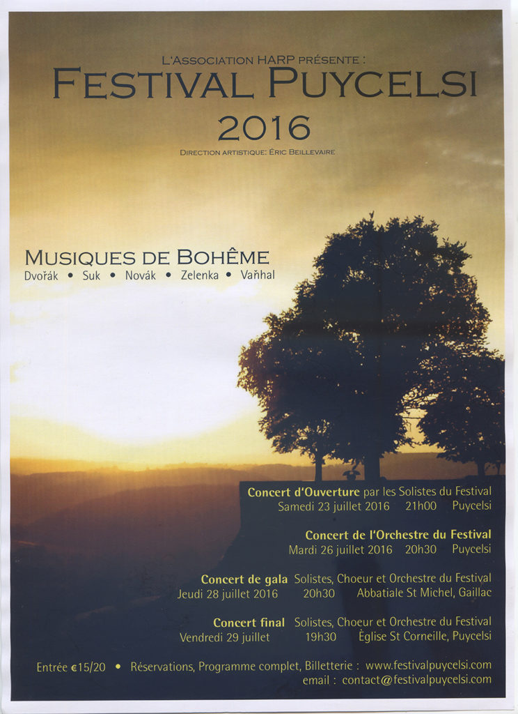 – L’orchestre du Festival donnera un concert le Mardi 26 Juillet à Puycelsi également (Sérénade de Josef SUK, Bagatelles et Chants Bibliques d’Anton DVORAK).