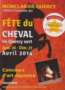 La grande fête du cheval en Quercy Vert aura lieu les samedi 26 et dimanche 27 avril 2014 à l’esplanade des lacs.