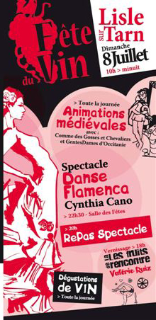 A Lisle sur Tarn, le dimanche 8 juillet 2012 de 10 h à plus de minuit se déroulera la 34ème Fête du Vin sous le signe du flamenco et du médiéval.