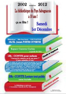 2002 … 2012 : La Bibliothèque du Pays Salvagnacois a 10 ans ! Ça se fête ! Samedi 1er Décembre 2012.