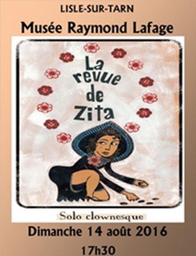 Dans le cadre de son exposition : “Le Cirque au temps de Toulouse-Lautrec” et poursuivant son cycle de conférences et d’animations, le musée Raymond LAFAGE accueille le Dimanche 14 Août 2016 à partir de 17h30, La Revue de Zita, théâtre.