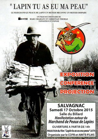 Samedi 17 octobre 2015, à partir de 14h, Salle du Billard, exposition conférence et projection du film « Lapin tu as eu ma peau ».