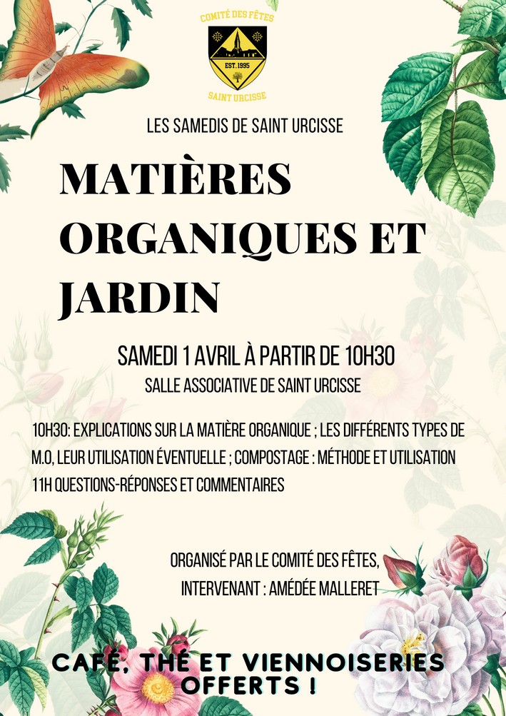 Les samedis de Saint Urcisse (81) Culture, Formation, Loisirs, Saint-Urcisse, N° 205 - Avril 2023 Samedi 1 avril 2023 , à 10h.30, salle associative. Information communiquée par Partager : Cliquer pour envoyer un lien par e-mail à un ami(ouvre dans une nouvelle fenêtre) E-mail Cliquez pour partager sur Facebook(ouvre dans une nouvelle fenêtre) Facebook Cliquez pour partager sur WhatsApp(ouvre dans une nouvelle fenêtre) WhatsApp J’aime ça :J’aime chargement… Similaire jardincompostageSaint Urcissematières organiques