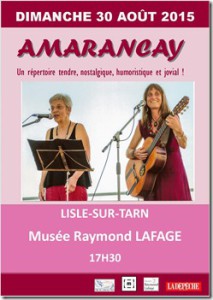 Dans le cadre de son exposition : « BLACHON : dessinateur humoristique et sportif » et poursuivant son cycle de conférences et d’animations le musée Raymond LAFAGE vous propose ce dimanche 30 août 2015 à partir de 17h30, le groupe AMARANCAY en concert.