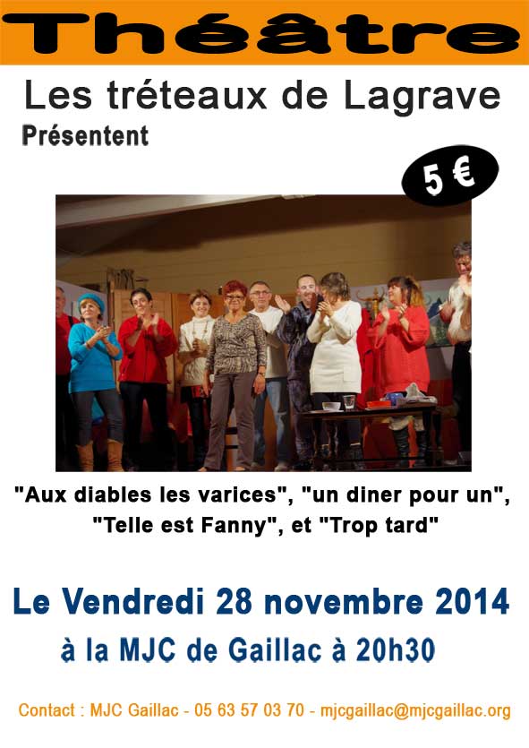 Les tréteaux de Lagrave vous donnent rendez vous le Vendredi 28 Novembre 2014 à 20h30 à la MJC de Gaillac.