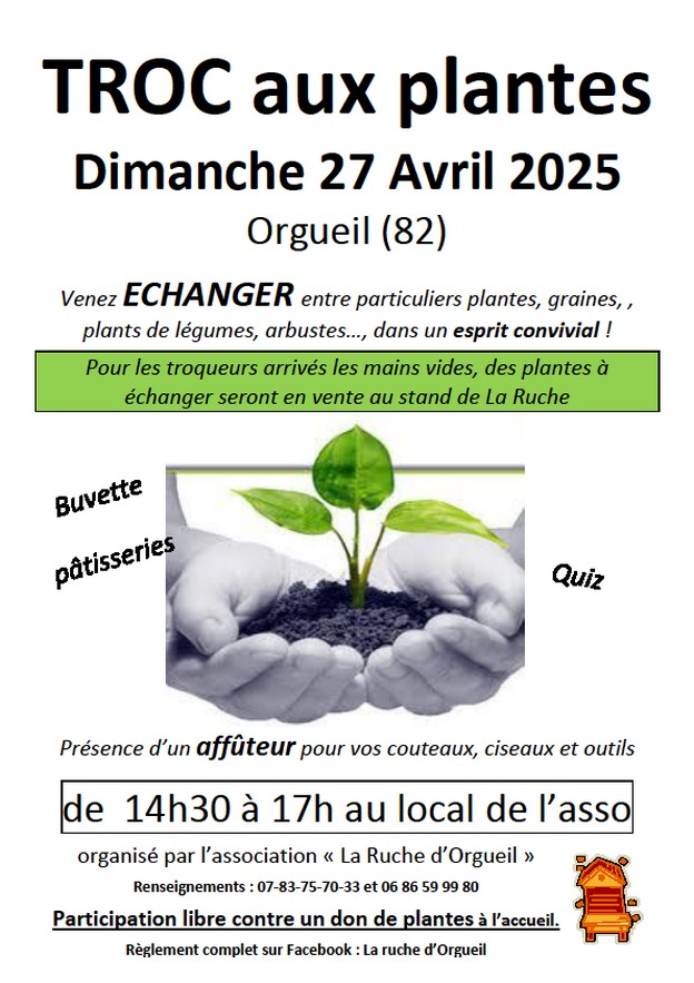 Venez vous amuser l’espace d’un après -midi, ,à troquer vos plantes,graines ,arbustes,livres de jardinage,nichoirs et outil de jardin,