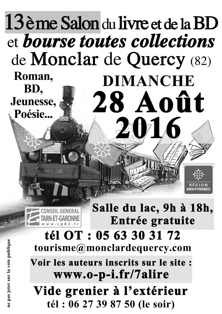 Monclar de Quercy, un salon pas comme les autres, que l’on retrouve toujours avec un grand plaisir, un salon où les lecteurs, fidèles, reviennent chaque année, où l’on ne s’ennuie pas une minute, où auteurs, collectionneurs, artistes divers se mêlent, se rencontrent avec bonheur, un salon animé par quelqu’un d’exceptionnel … Robert Linas.