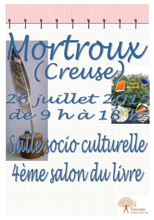 4ème Salon du Livre à Mortroux le Dimanche 26 Juillet 2015, de 9h à 18h, Salle Socio Culturelle.