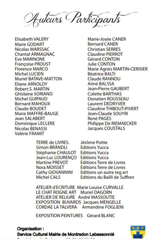 Ils seront présents au 6ème Salon du Livre (en cliquant sur les noms des auteurs en italique rouge , vous accéderez à leur bibliographie) Bachellerie Jean-Claude Beaubatie Gilbert Bienvenu Jacques Chargé Frank Condat Monique Delcros […]