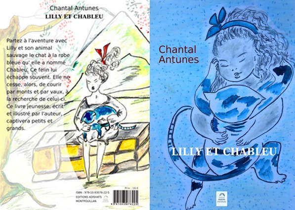 La romancière Illustratrice Chantal Antunes, après avoir écrit 7 romans tous diversifiés : (historique, sciences fiction, fantasy, ésotérique) – livres qui lui ont valu plusieurs prix. Elle s’est mise à réaliser des illustrations avec texte pour petits et grands .A ce jour elle a écrit quatre livres jeunesse : Allégories de nos campagnes profondes – Terres de nos Aïeux d’ombre et de lumière – Tolède est mon nom. Le tout dernier, « Lilly et Chableu » sortie courant Janvier. Un livre qui ravira petits et grands, dont toutes les pages sont illustrées (pleine page), avec texte. Ce livre dépeint l’histoire d’une enfant âgée de 6 ans qui a pour compagnon un chat sauvage, qu’elle a nommé « Chableu » , nom par rapport à la couleur de sa robe d’un bleu gris. Aventures et nombreuses péripéties entre Lilly et ce chat sauvage qui lui échappe souvent. Ce livre jeunesse par ses dessins,très colorés au pastel et à l’encre de chine, vous fera découvrir un site tout à la fois, montagneux et rural.