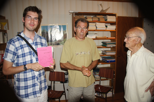 Nadal Rey a deux motivations essentielles : favoriser les échanges intergénérationnels et valoriser la langue et la culture occitanes. L’émotion fut donc grande pour le vice-président de Tarn e Garona occitan en accueillant à son domicile « Cèu d’estiu », Alexander Sigmund, un jeune étudiant autrichien de 21 ans, avec lequel il a eu un long entretien en occitan . « Cela donne chaud au cœur de voir que, porté par un jeune, le flambeau va continuer de brûler, qui plus est bien au delà des frontières de l’Occitanie. » Arrivant de l’Institut des langues romanes de l’université de Vienne en Autriche , le jeune homme s’est dit « espanté » (c’est le mot qu’il a employé !) d’écouter Nadal Rey lui raconter sa vie, en occitan bien sûr : « C’est incroyable, cet homme est un très bel exemple pour la jeunesse . Il a forgé sa destinée à force de volonté. Il prouve qu’issu d’une famille très modeste et ne parlant qu’occitan en arrivant à l’école, cela ne l’a pas empêché de réussir une vie incroyable . En tant que linguiste, je comprends très bien que la pratique simultanée de deux variantes de l’occitan, languedocien et gascon, lui ait ouvert l’esprit et permis d’apprendre facilement une autre autre langue romane : l’espagnol qu’il a enseigné au plus haut niveau. Grâce à un tel exemple, les personnes qui n’osent pas parler le « patois » , comme on dit souvent ici au lieu d’occitan, ne peuvent que retrouver leur fierté d’avoir la chance se parler une si belle langue . En plus , lorsqu’elles parlent français, cela leur donne un accent merveilleux . »