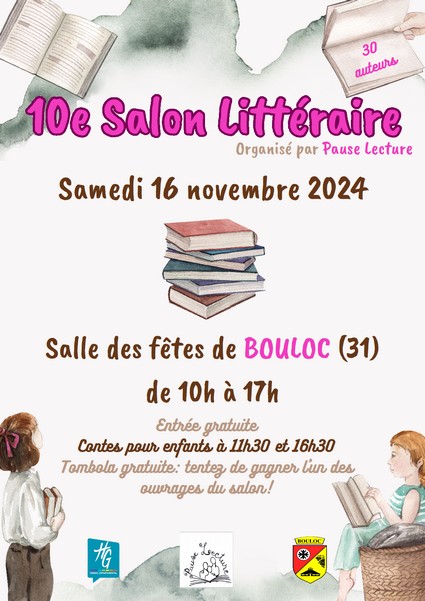 L’association Pause Lecture organise son 10 ème salon littéraire le samedi 16 novembre 2024 à la salle des fêtes, 55 rue Jean Jaurès, 31620 Bouloc.