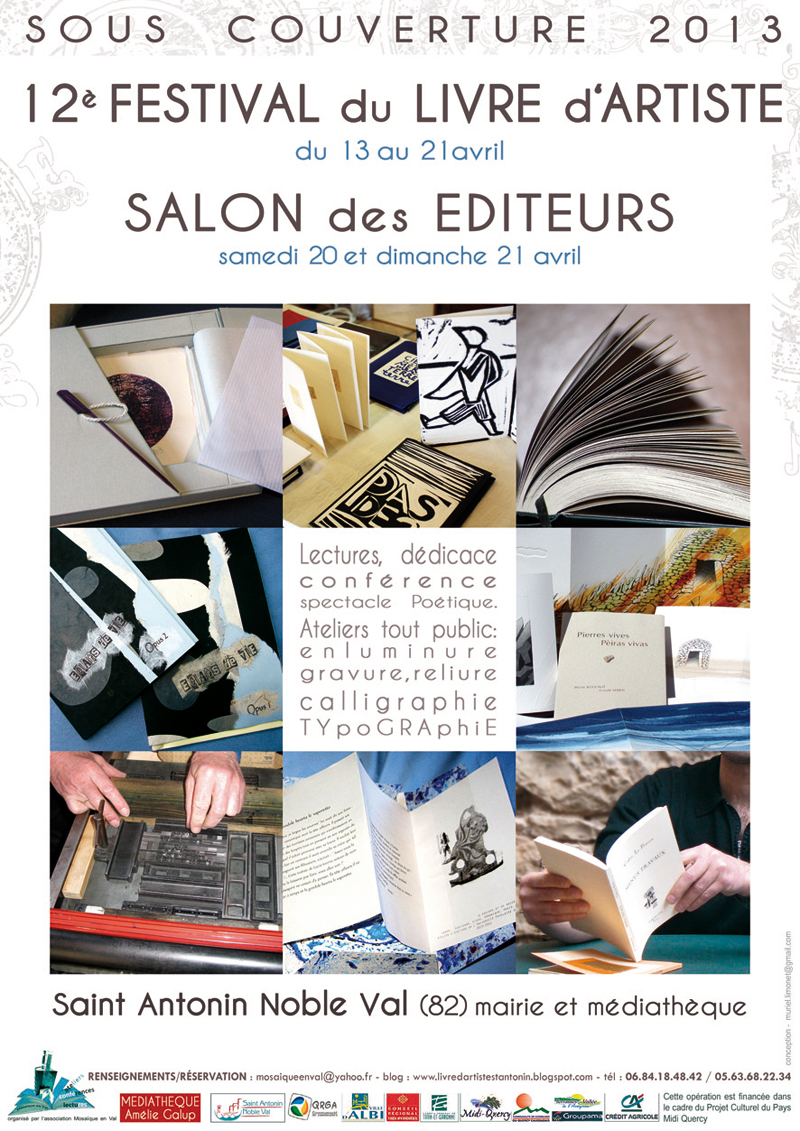 L’association Mosaïque en Val organise pour la 15ème année son festival du livre d’artiste, du 9 au 17 avril 2016 à Saint Antonin Noble Val (82140). Contact : Mosaïque en Val Tél. : 06.84.18.48.42 Courriel […]