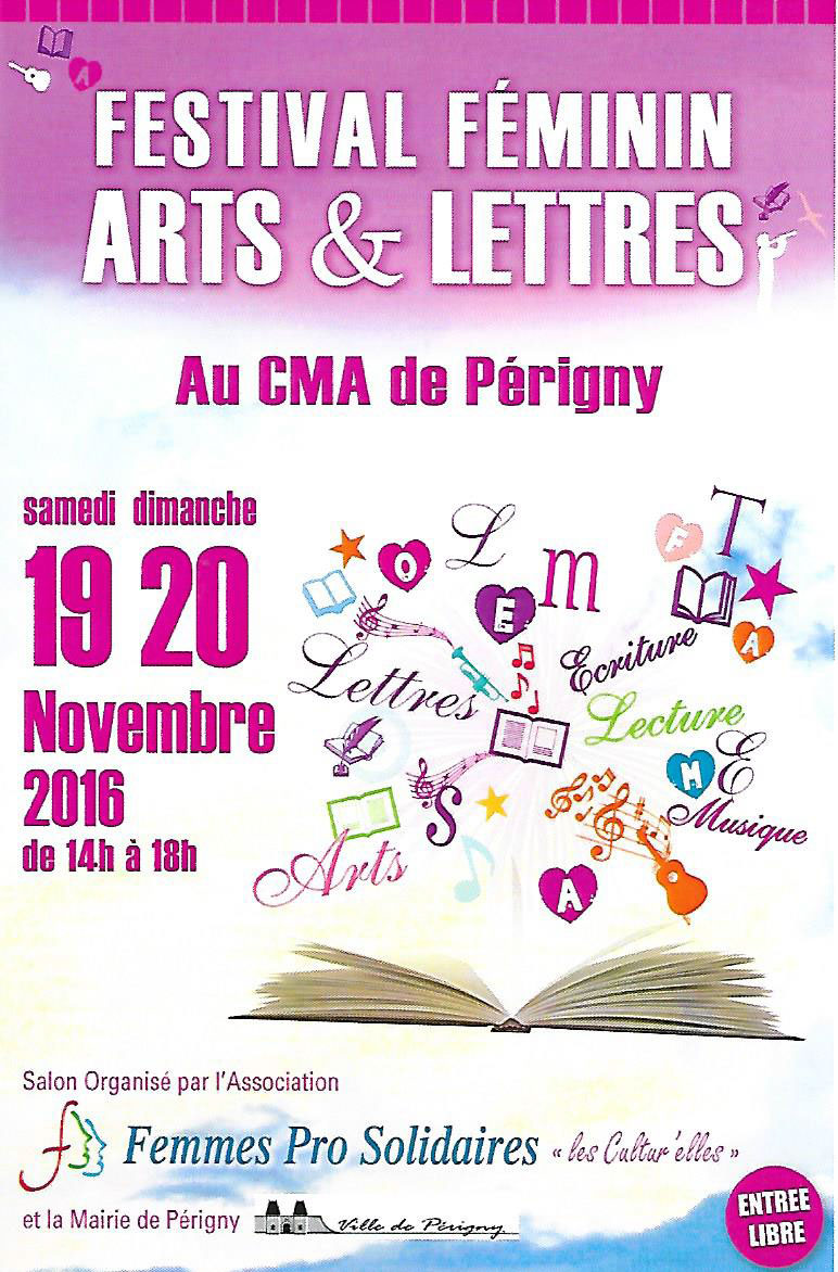 7 à lire Actu Festival féminin « Arts & Lettre » à Périgny (17). 19 et 20 Novembre 2016. 16 novembre 2016 Yann 0 Enregistrer Enregistrer Enregistrer Enregistrer Enregistrer