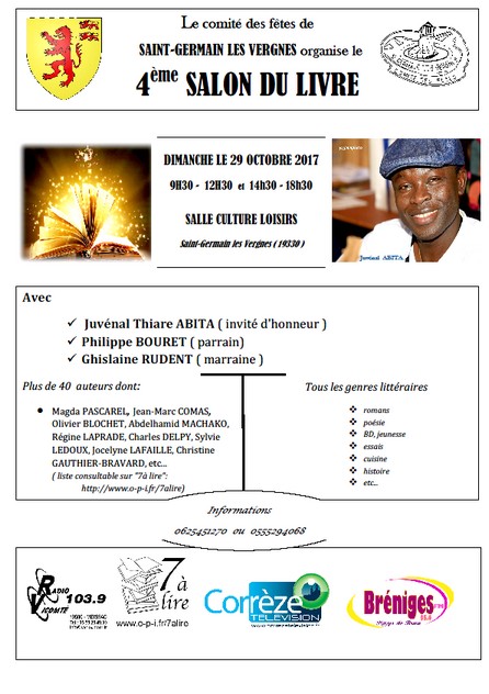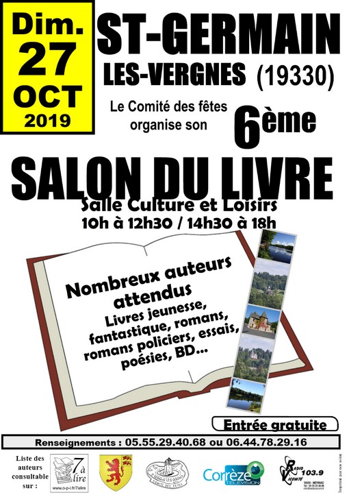 6ème Salon du Livre de Saint Germain Les Vergnes (19) Dimanche 27 octobre 2019