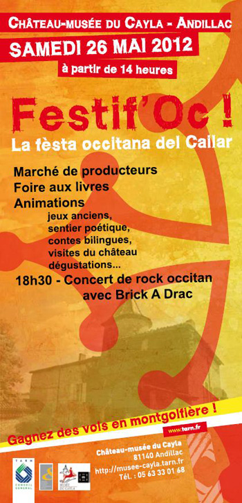 Le Conseil général du Tarn vous invite à la première édition de « Festif’oc », la fête occitane qui se déroulera le samedi 26 mai 2012 au Château-musée du Cayla à Andillac. Dès 14h00, le […]