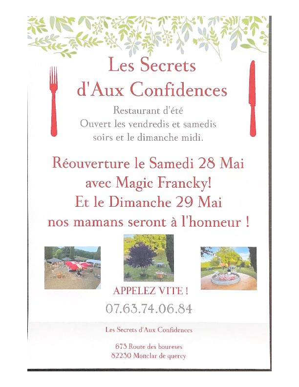 Les Secrets d’Aux Confidences 24 mai 2022 Cathy MOULIN OPI, Restaurant D'été 0 Similaire Restaurant D'été