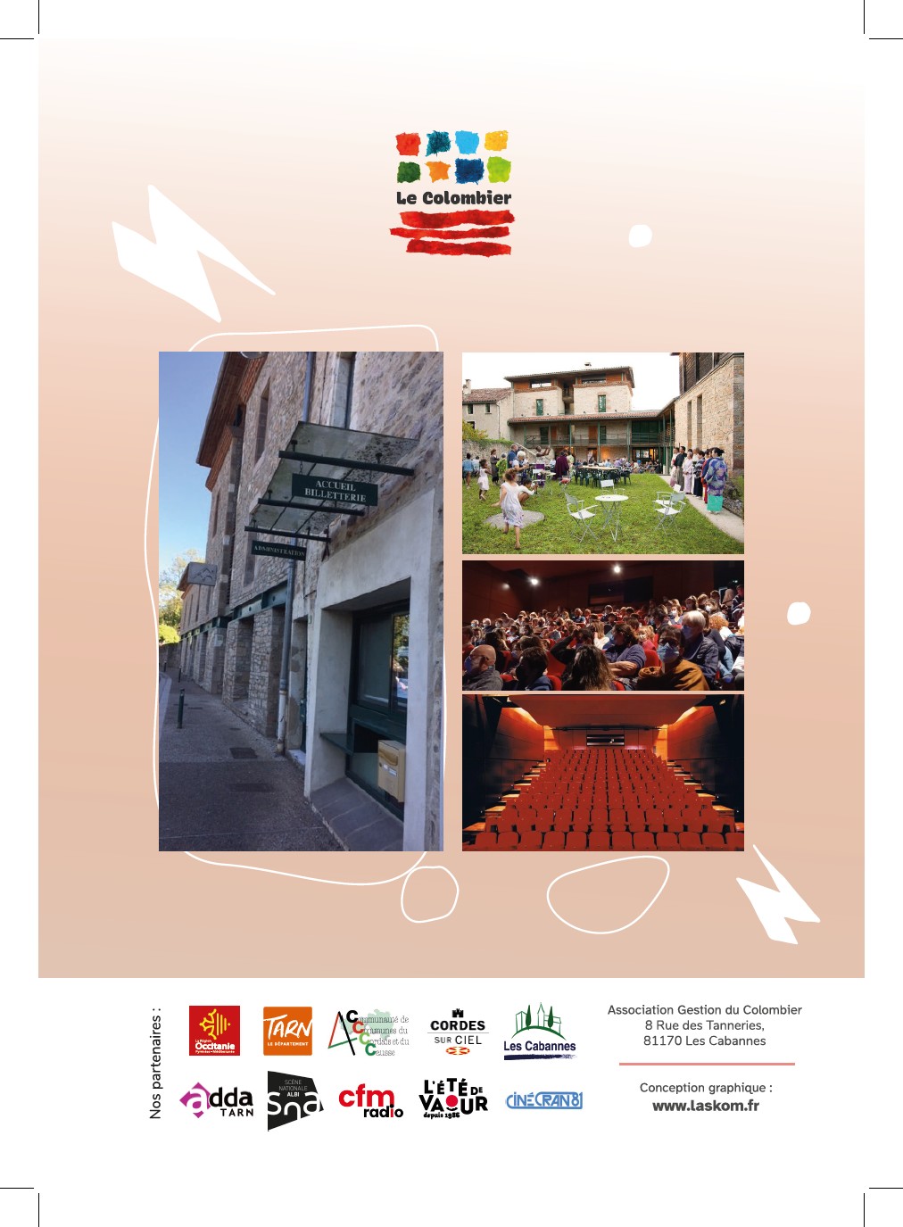 L’association a pour objet de gérer le théâtre Le Colombier pour le compte de la Communauté de Commune du Cordais et du Causse. Elle accueille des compagnies en résidence artistique ; elle organise, produit et accompagne des évènements culturels (spectacles, conférences, stages, ateliers, projections) dans des domaines artistiques différents : théâtre, cirque, danse, musique, etc