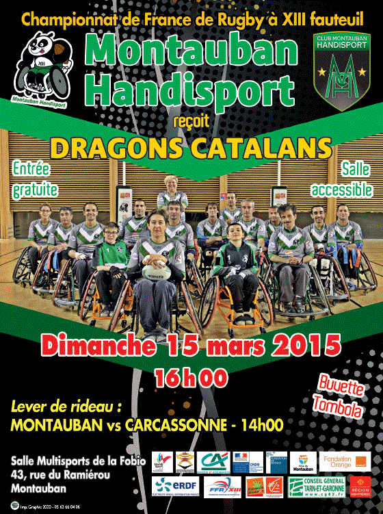Montauban Handisport vs Dragons Catalans : Dimanche 15 mars 2015, à 16h, Salle Multisports de la Fobio à Montauban.