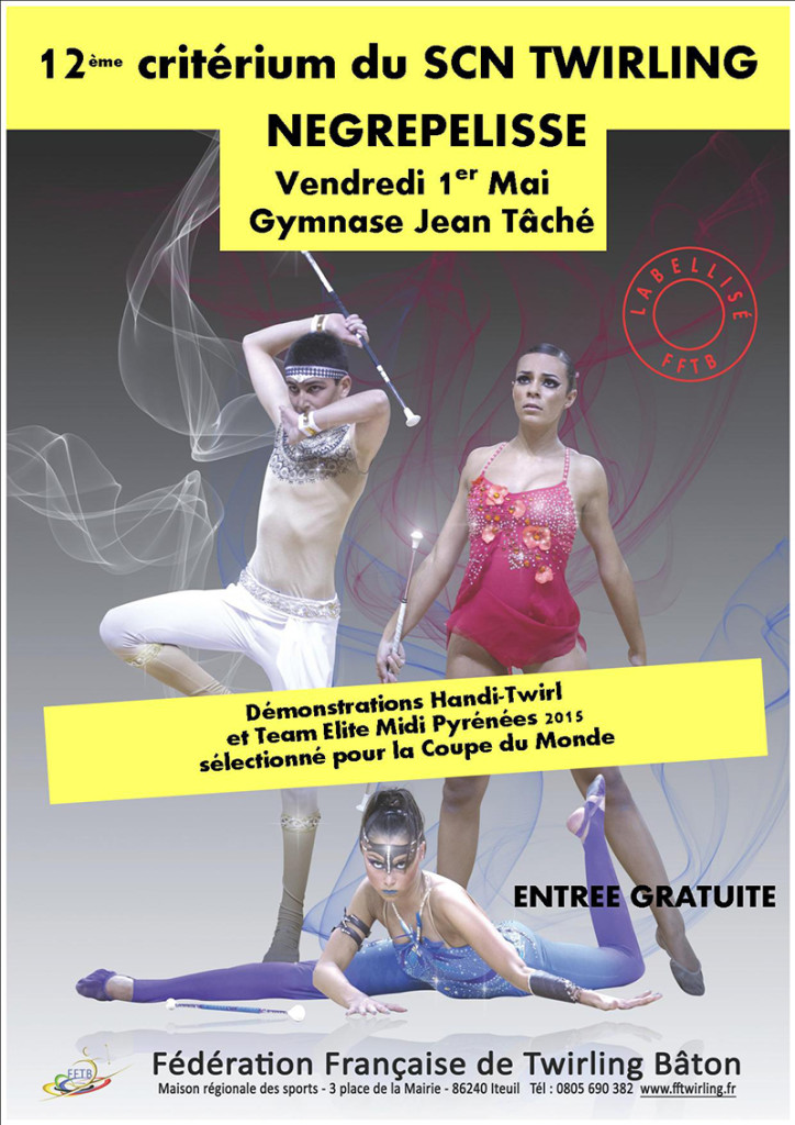 12ème critérium de Twirling de la ville de Nègrepelisse : Vendredi 1er mai 2015, au gymnase Jean Taché.