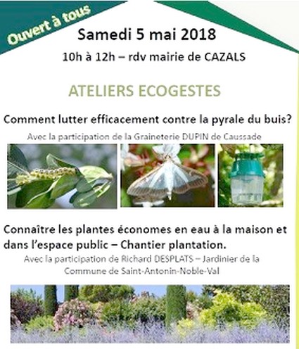 Après 2 rencontres en décembre 2017 et janvier 2018, les participants et le maire de Cazals, Georges ESPINOSA, ont proposé de diffuser les bonnes pratiques concernant la lutte contre la pyrale du buis et l’économie d’eau dans les jardins et l’espace public.