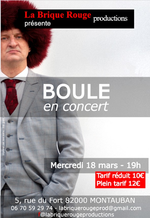 Seul en scène, BOULE nous raconte au fil de ses chansons, le parcours d’un artiste en route vers le succès.