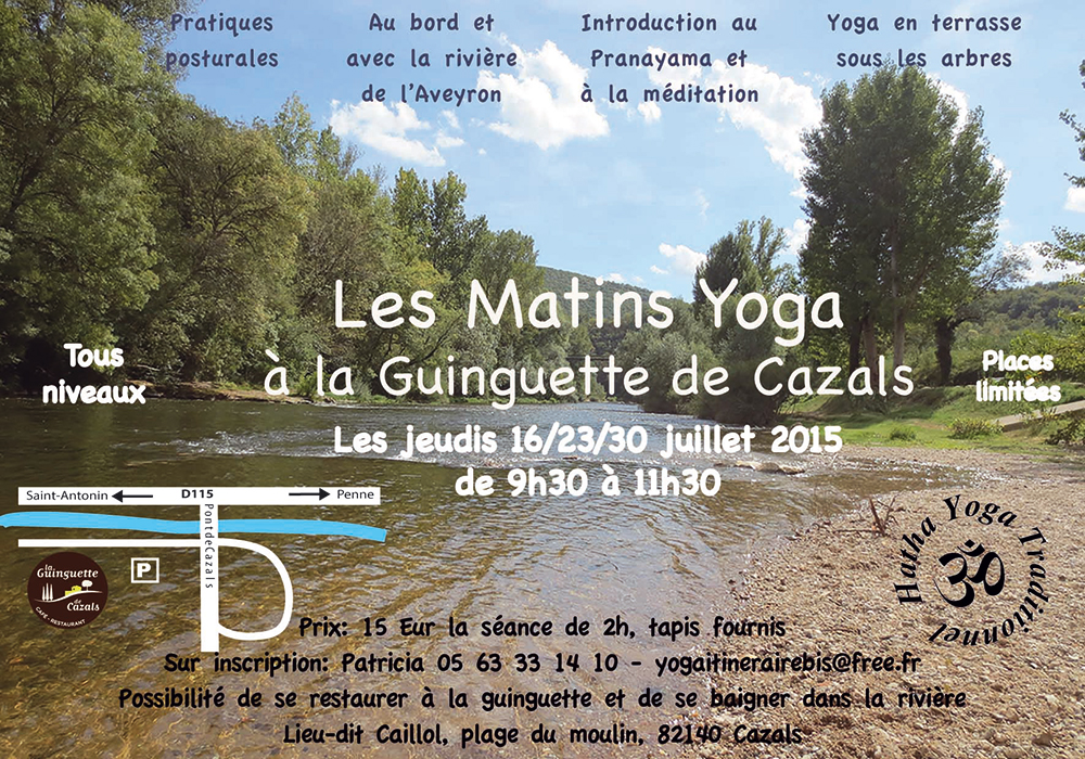 La Guinguette (café restaurant) est située sur la plage de Cazals, dans un endroit de nature superbe, et offre la possibilité de rester la journée sur place, après le yoga (baignade, restauration, ballade par les sentiers qui longent l’Aveyron…).
