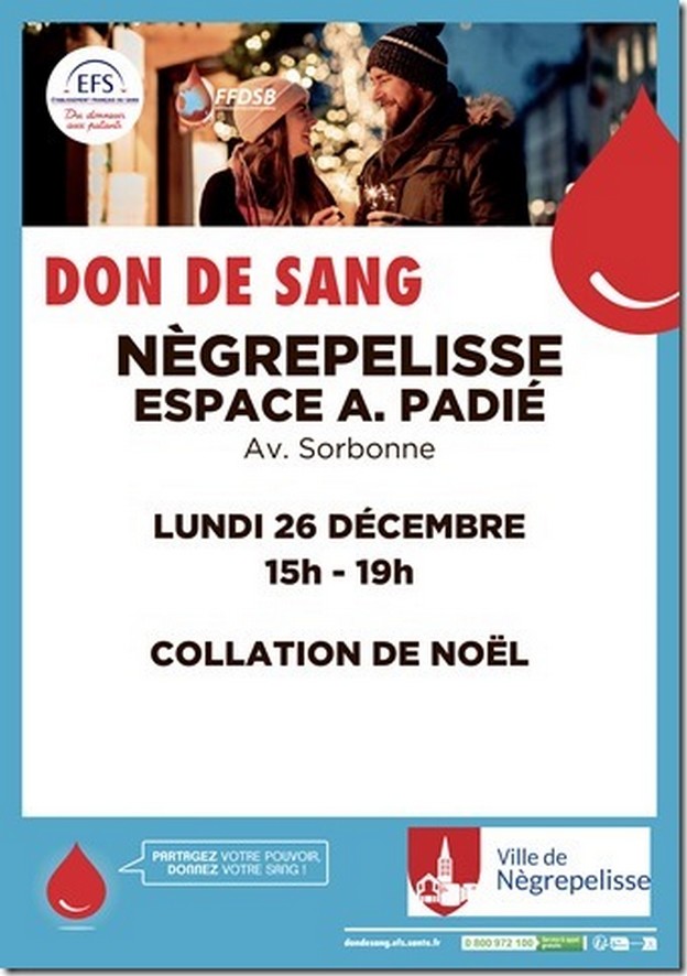 Lundi 26 décembre 2022, de 15h. à 19h., espace A. Padié.