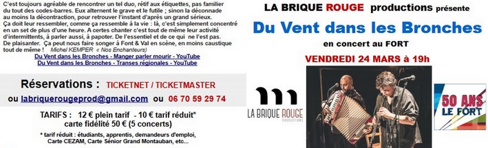 Vendredi 24 mars 2023, à 19h. au Fort.