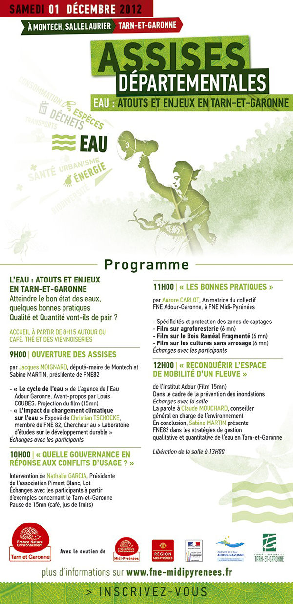 Les assises départementales sur le thème « Eau : Atouts et Enjeux en Tarn-et-Garonne » auront lieu le Samedi 1er Décembre 2012, Salle Laurier à Montech.