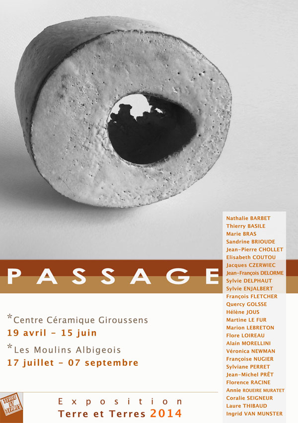 Avec le soutien des Ateliers d’Art de France, de La Région Midi-Pyrénées, du Département du Tarn, notre exposition réunie cette année 25 céramistes de l’Association Terre et Terres qui se retrouvent autour du mot « Passage ».
