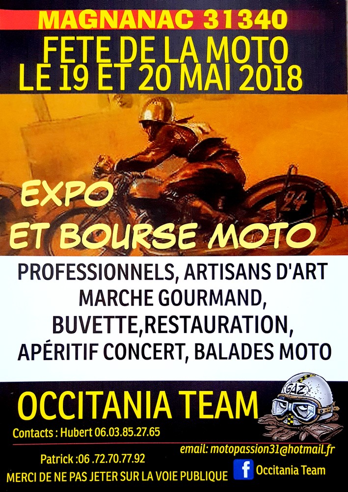 Samedi 19 et dimanche 20 mai 2018, expo et bourse moto.