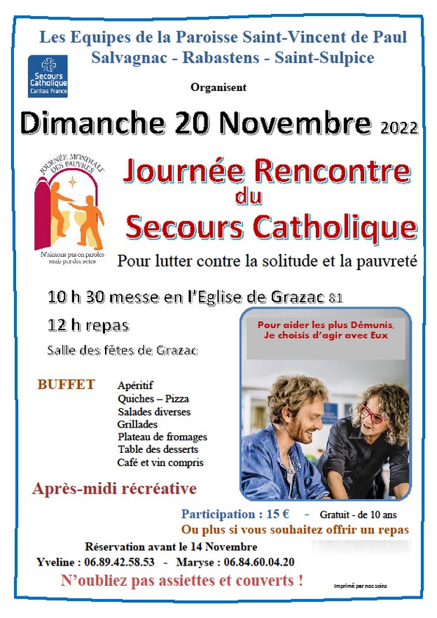 Dimanche 20 novembre 2022, à partir de 10h.30 à Grazac.