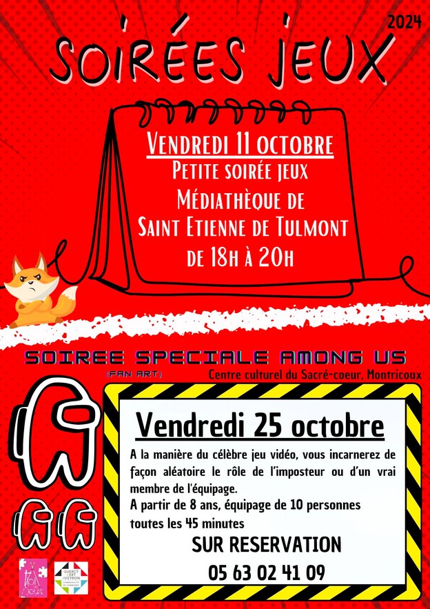 - Et une grande soirée jeux spéciale Among us le vendredi 25 octobre 2024 ! Cette second esoirée est sur réservation uniquement !